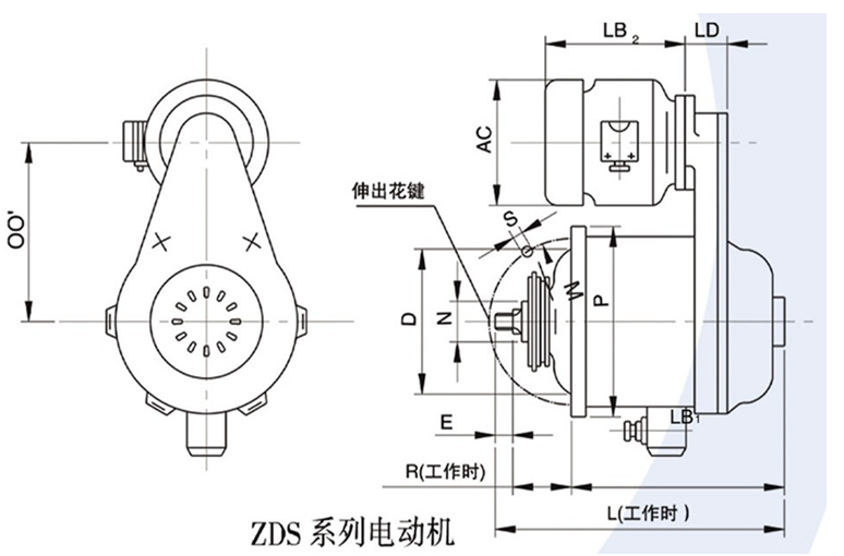ZDS雙速子母電機是由兩臺錐形轉(zhuǎn)子三相異步電動機通過中間慢速驅(qū)動裝置聯(lián)接起來的一種復合電動機,其中大功率一臺為主機(母機),另一臺小功率為輔機(子機),具有快慢兩種速度,本系列電機為臥式電動機,機座不帶底腳,采用圓錐面制動器,可頻繁起動。本系列電機除與電動葫蘆配套外,還適用于起重運輸?shù)葯C械。