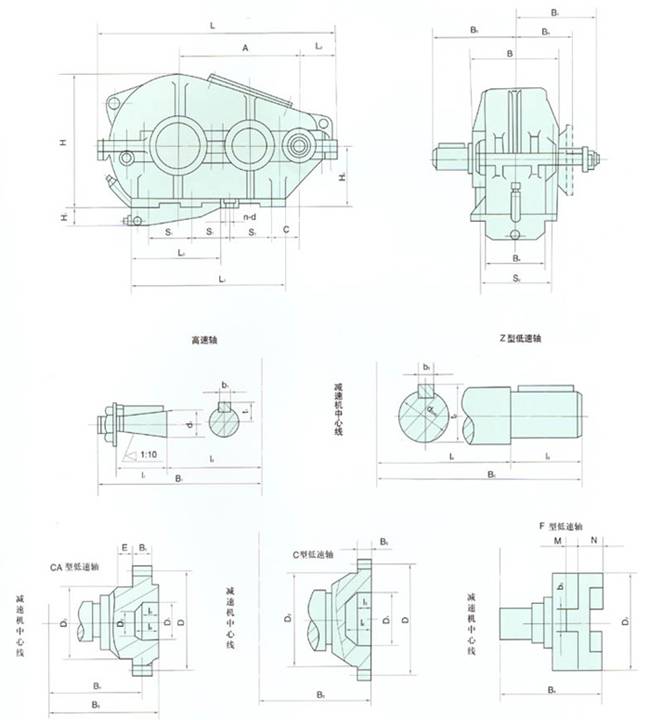 5、減速機有九種傳動比、九種配置型式和三種低速軸軸端型式;