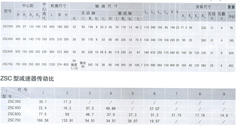 ZSC(L)型減速機技術(shù)參數(shù):